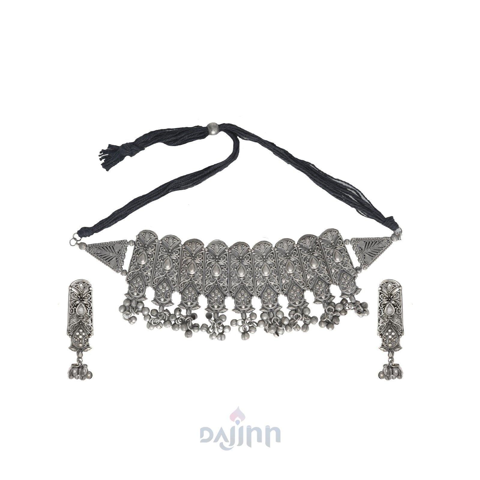 Dajinn Spruha Silver Oxidised Choker Necklace