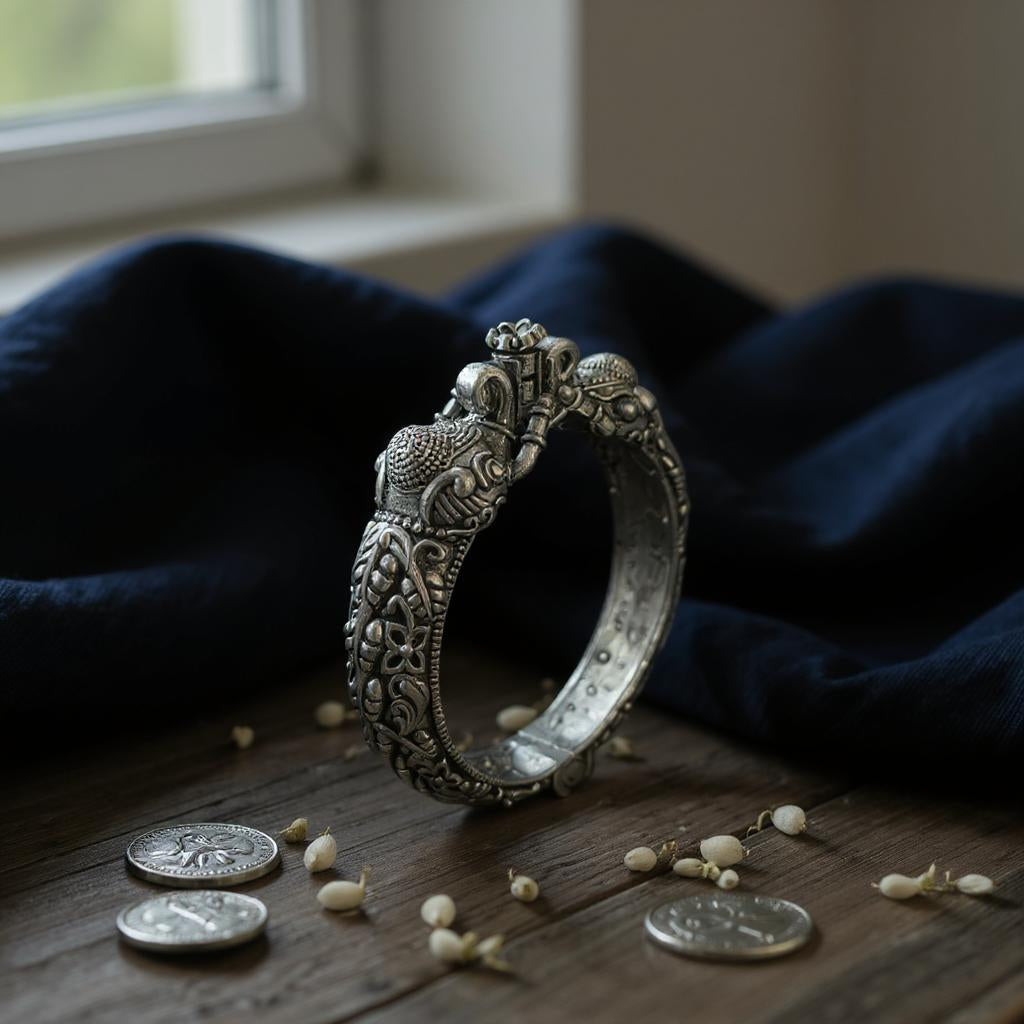 Whether you are gifting it 🎁 or wearing it yourself, this bracelet makes a statement of grace and heritage. Handcrafted with premium oxidized brass, finished in antique silver, it’s a must-have addition to your jewellery collection.