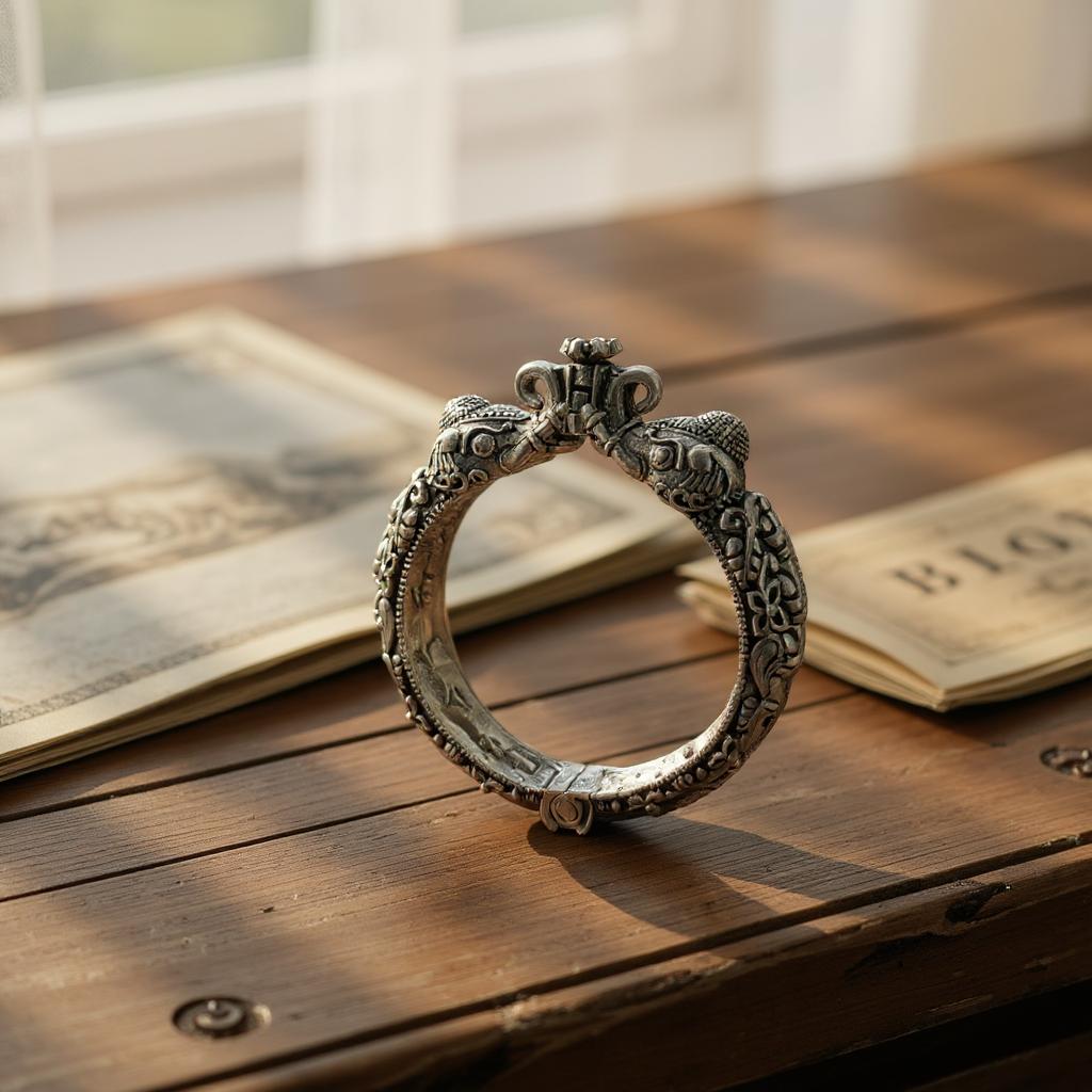 Dajinn Timeless Aura Collection – Brass Oxidized Kada | Oxidized Brass Ethnic Bangle for Women & Girls | Antique Finish From the Roots of India (Elephant Majesty Kada)