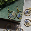This etherial pair of earrings was made keeping magic and spark in mind. We collected blooms of Queen Anne's lace and Blue Lobelia flowers, preserved them and cast them in crystal clear resin in a pair of glitzy, tinsel rims. A pair of earrings encasing magical spark straight from nature.