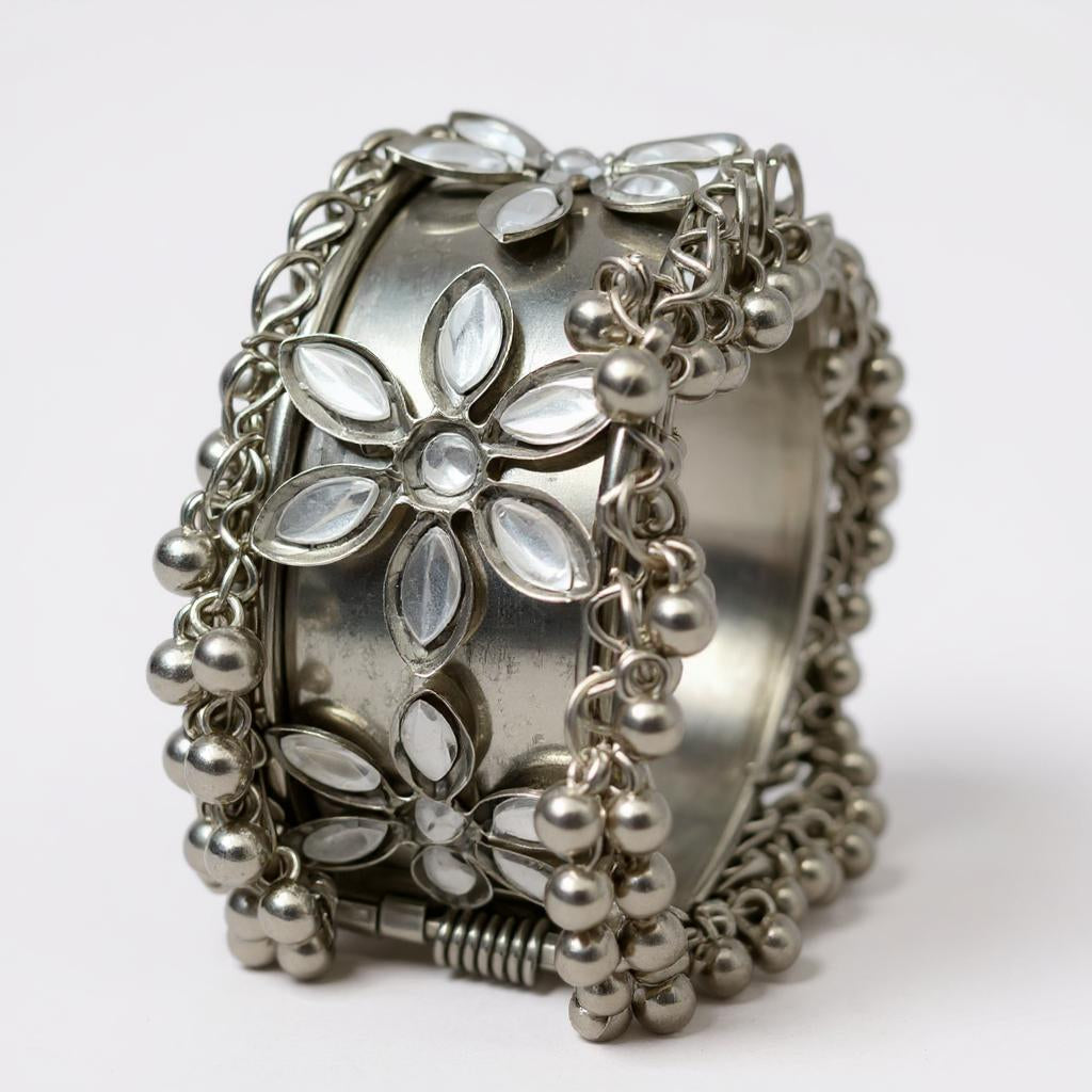 Dajinn Women’s Ethnic Oxidized Brass Bangles | Traditional Kundan & Elegant Design Kada | Antique Traditional Finish Jewelry (Heritage Dome Kada)