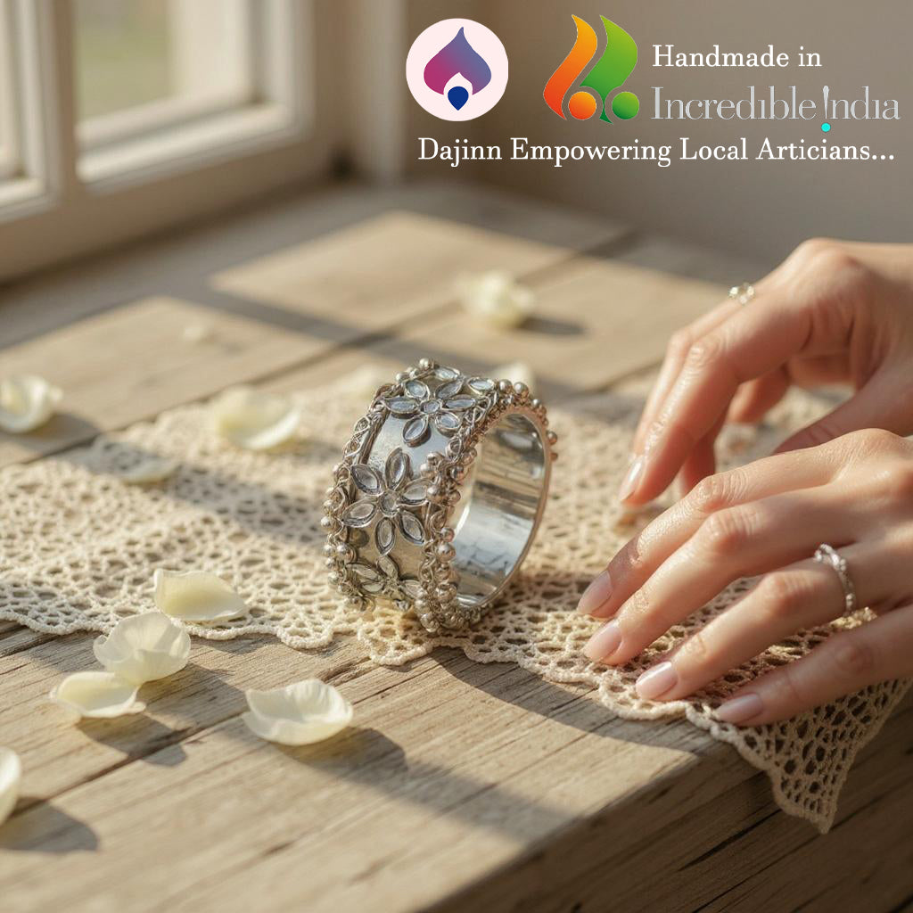 - Step into timeless elegance with Dajinn’s Naqshi Tales Collection – a tribute to India’s rich cultural artistry. Handcrafted in oxidized brass and pure brass, these statement bangles feature traditional floral, kundan, and engraved motifs that embody old-world charm. Perfect for weddings, festive occasions, and ethnic celebrations, these bangles combine heritage craftsmanship with contemporary styling, making them a must-have in your ethnic jewelry collection.✅ Brand Assurance – Dajinn brings you exclusive, handpicked jewelry pieces designed to add elegance and cultural charm to your collection. All our products comes in our beautiful Signature Gift Boxes