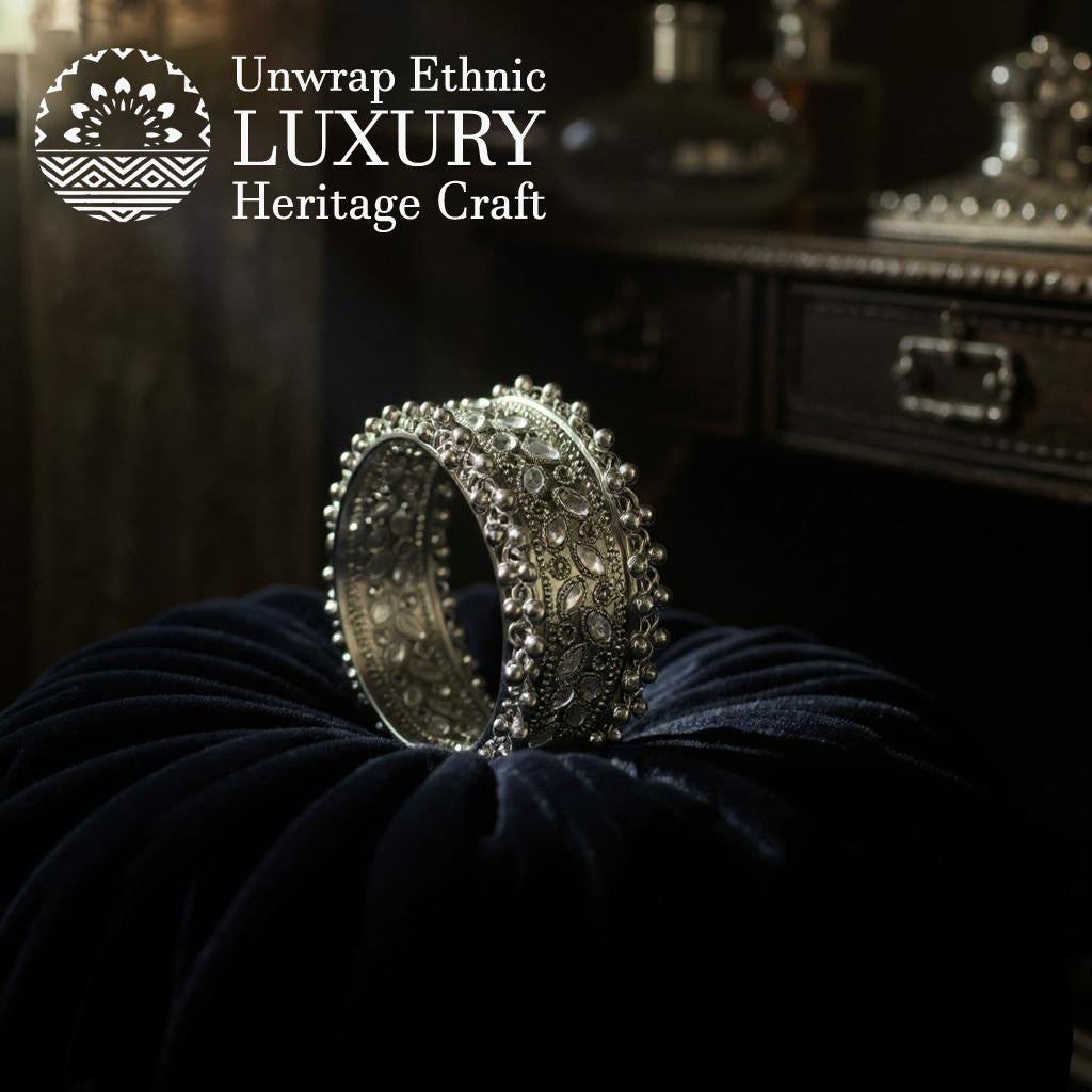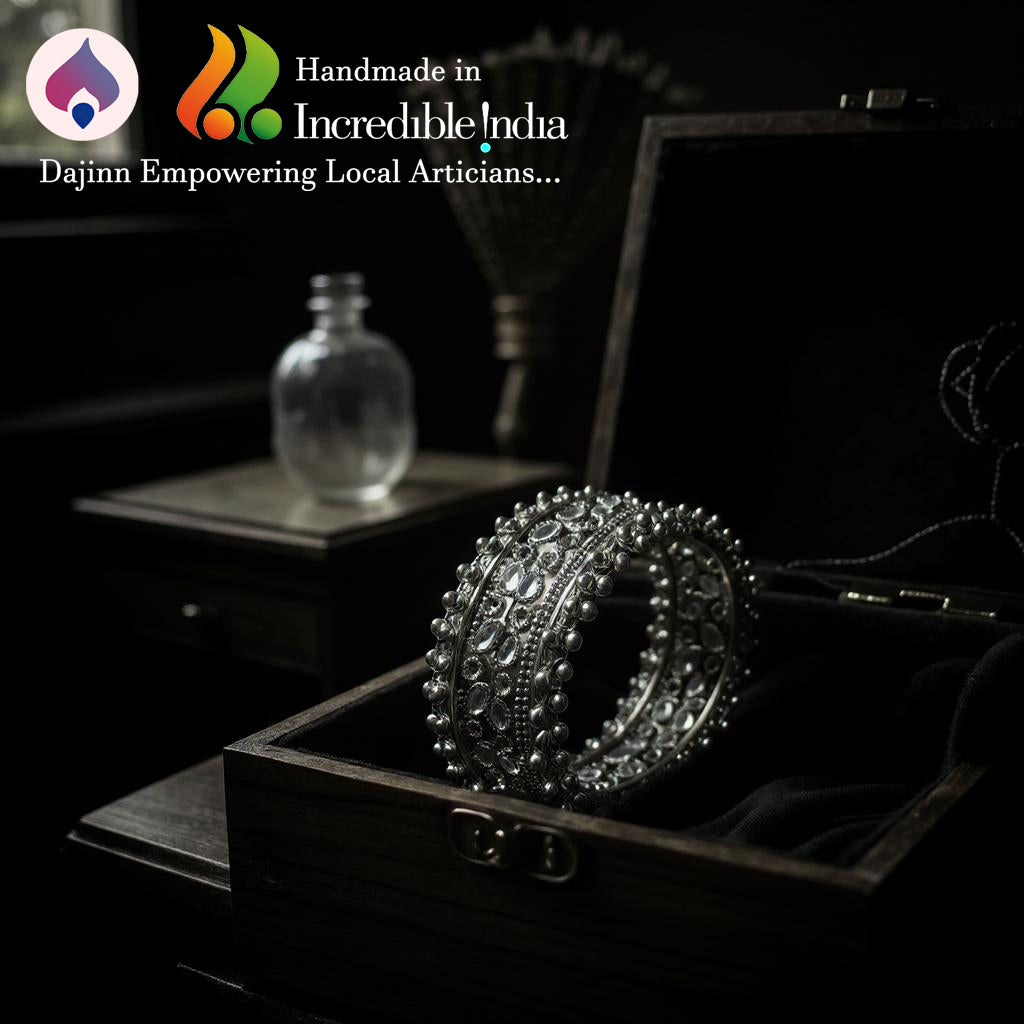 - Step into timeless elegance with Dajinn’s Naqshi Tales Collection – a tribute to India’s rich cultural artistry. Handcrafted in oxidized brass and pure brass, these statement bangles feature traditional floral, kundan, and engraved motifs that embody old-world charm. Perfect for weddings, festive occasions, and ethnic celebrations, these bangles combine heritage craftsmanship with contemporary styling, making them a must-have in your ethnic jewelry collection.✅ Brand Assurance – Dajinn brings you exclusive, handpicked jewelry pieces designed to add elegance and cultural charm to your collection. All our products comes in our beautiful Signature Gift Boxes