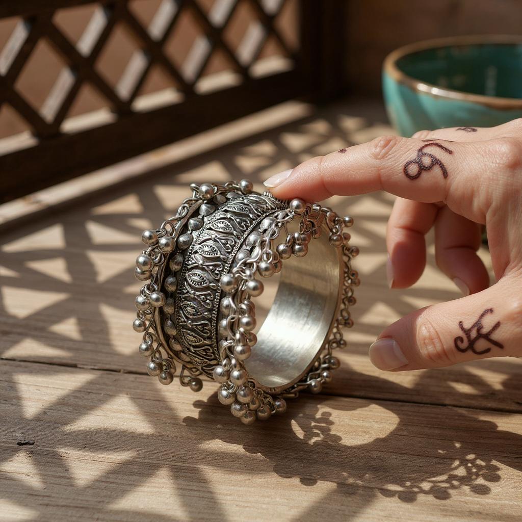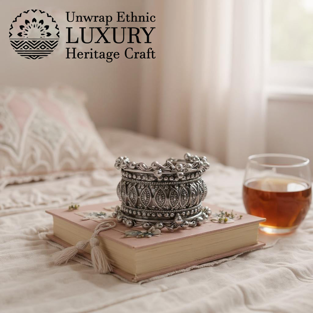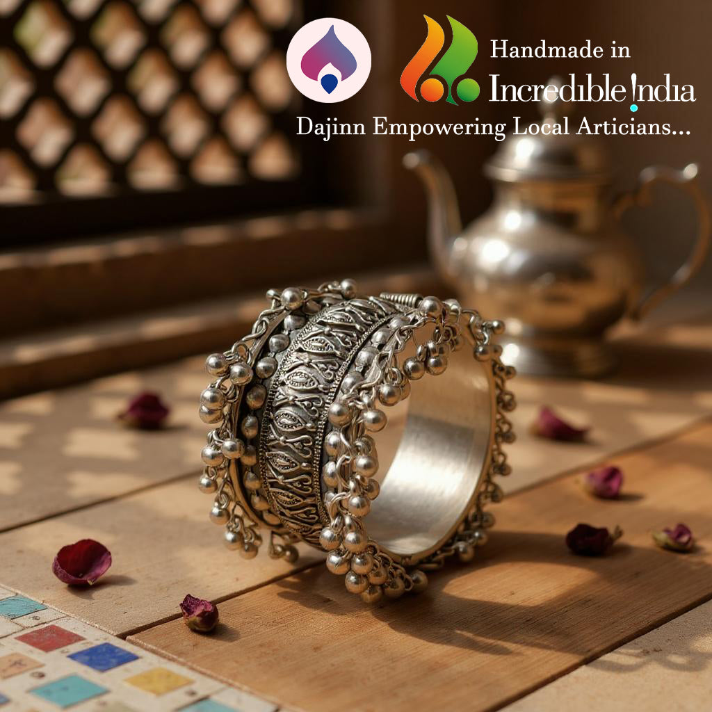 - Step into timeless elegance with Dajinn’s Naqshi Tales Collection – a tribute to India’s rich cultural artistry. Handcrafted in oxidized brass and pure brass, these statement bangles feature traditional floral, kundan, and engraved motifs that embody old-world charm. Perfect for weddings, festive occasions, and ethnic celebrations, these bangles combine heritage craftsmanship with contemporary styling, making them a must-have in your ethnic jewelry collection.✅ Brand Assurance – Dajinn brings you exclusive, handpicked jewelry pieces designed to add elegance and cultural charm to your collection. All our products comes in our beautiful Signature Gift Boxes