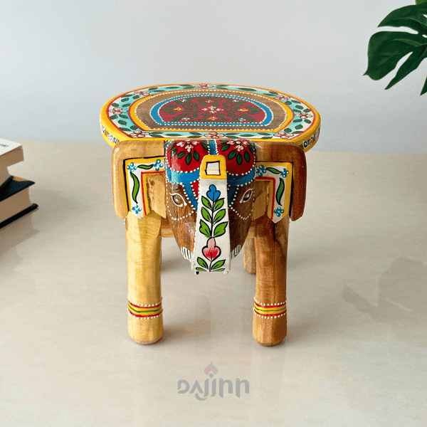 Enhance your home with our Natural Handpainted Wooden Elephant Stool, handcrafted by Rajasthani artisans. Its earthy tones add traditional charm, perfect for Diwali decor.
