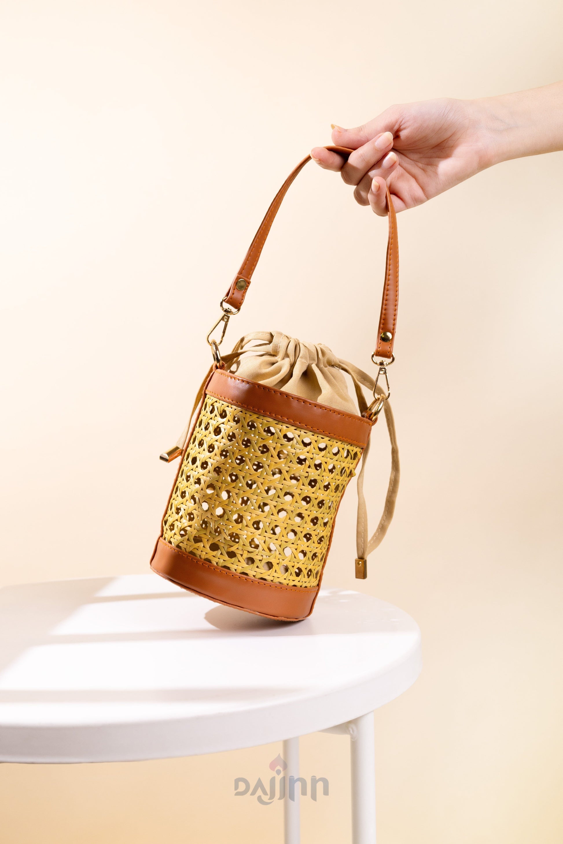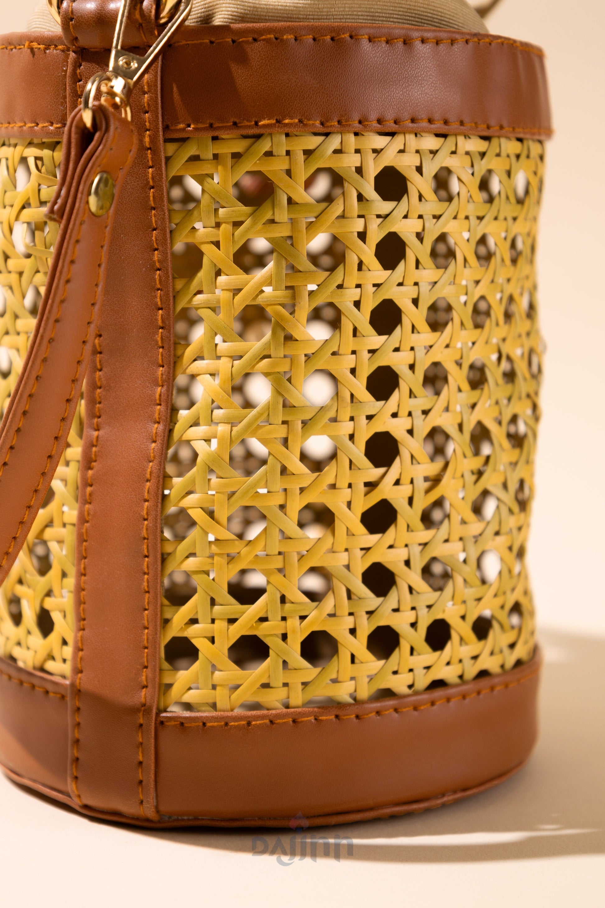 Dajinn Rattan Weave Bucket Bag - Nude Tan