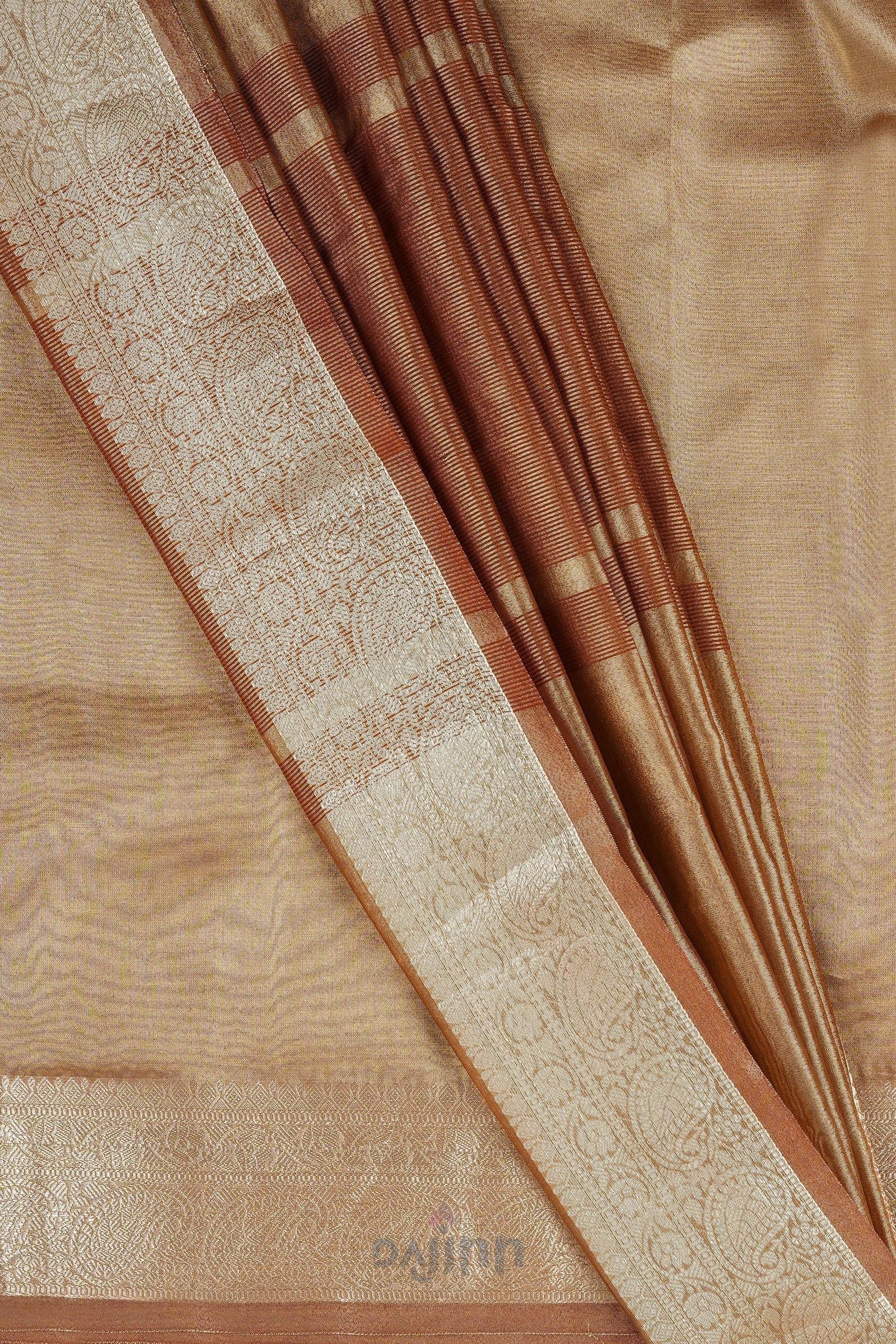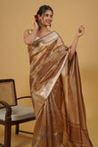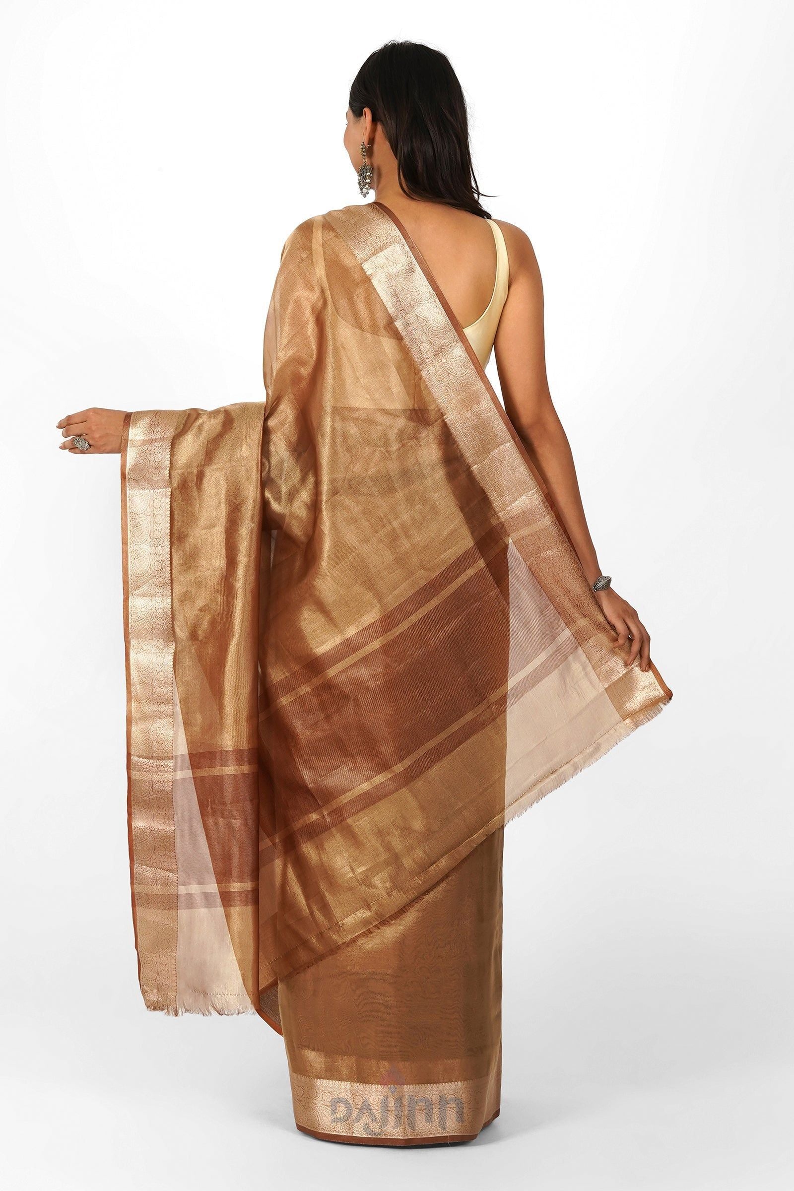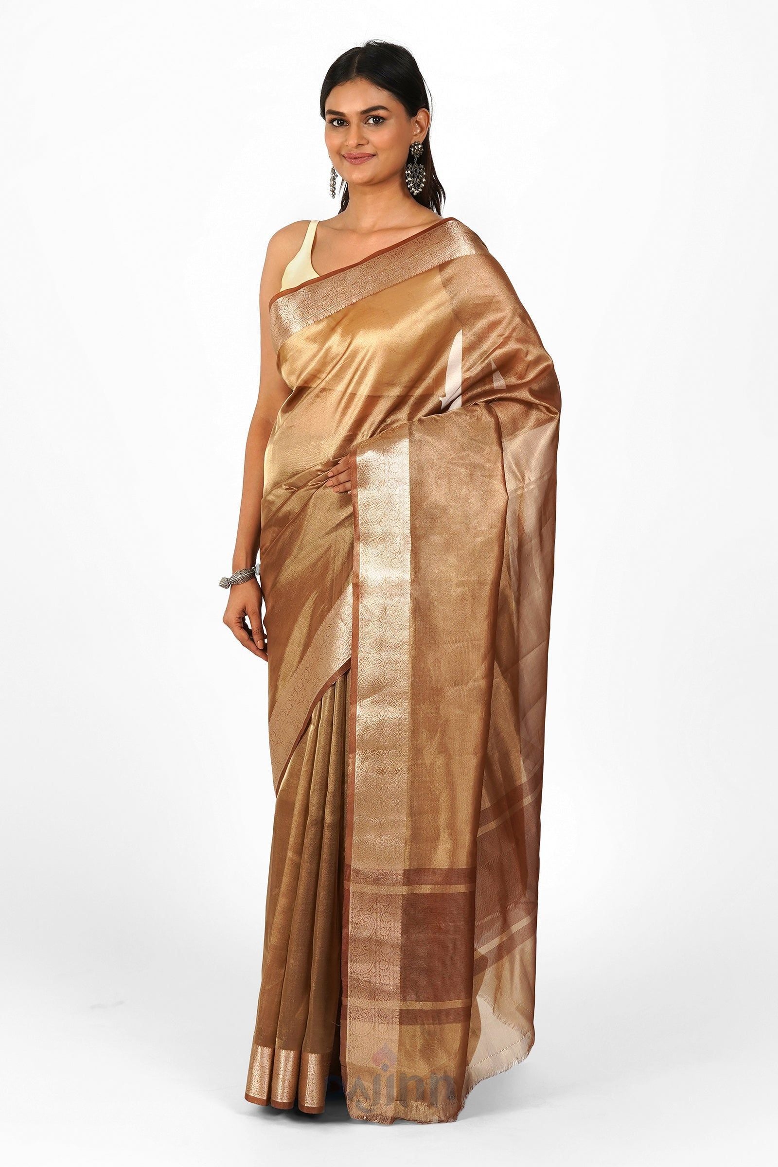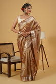 Our Sadhna Brown Banarasi Tissue Saree, is a captivating blend of sophistication and cultural richness. The delicate tissue fabric drapes with effortless grace, enveloping you in a veil of understated elegance. The rich brown hue of the saree exudes warmth and earthiness, reminiscent of the natural beauty of the landscape