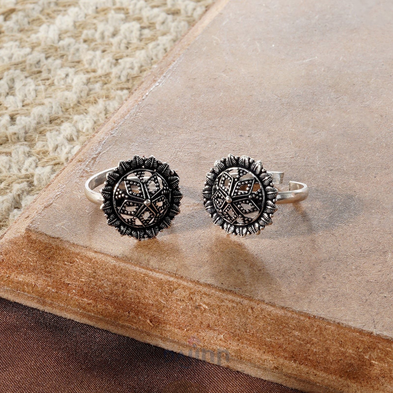 Baagh Silver Oxidised Toe Ring