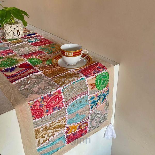 Looking for vibrant table runners? Handcrafted by artisans of Rajasthan, these Khambadiya table runners in white colour will brighten up your room.