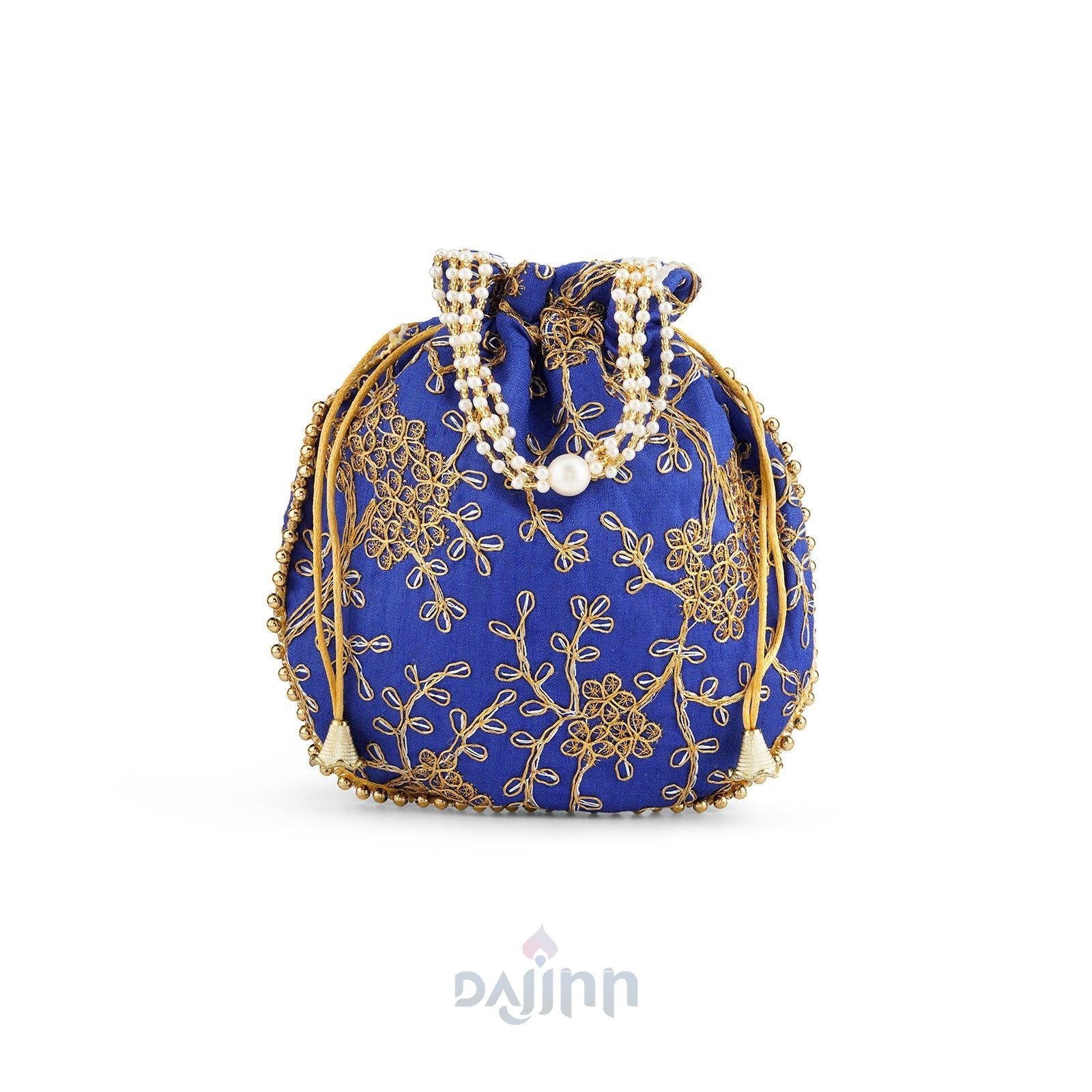 Illuminate your outfit with the Yeh Haseen Vadiyan Blue Potli Bag. Its beautifully embroidered design and sophisticated silver colour make it a standout piece for any cultural celebration.